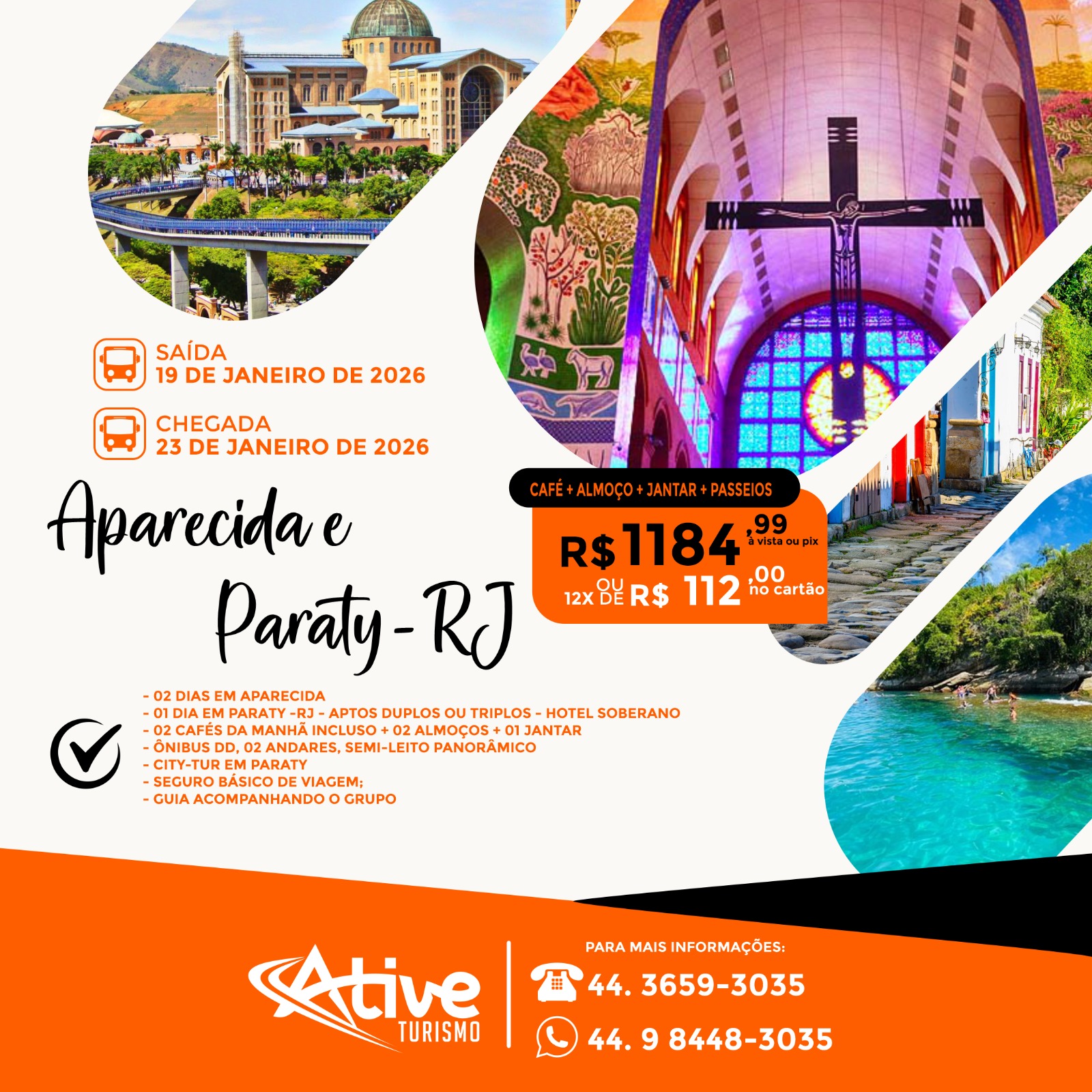 🔸 R$1184,99 à vista (ou em pix até na data da viagem) ou 12 x de R$112,00 – Vagas limitadas.